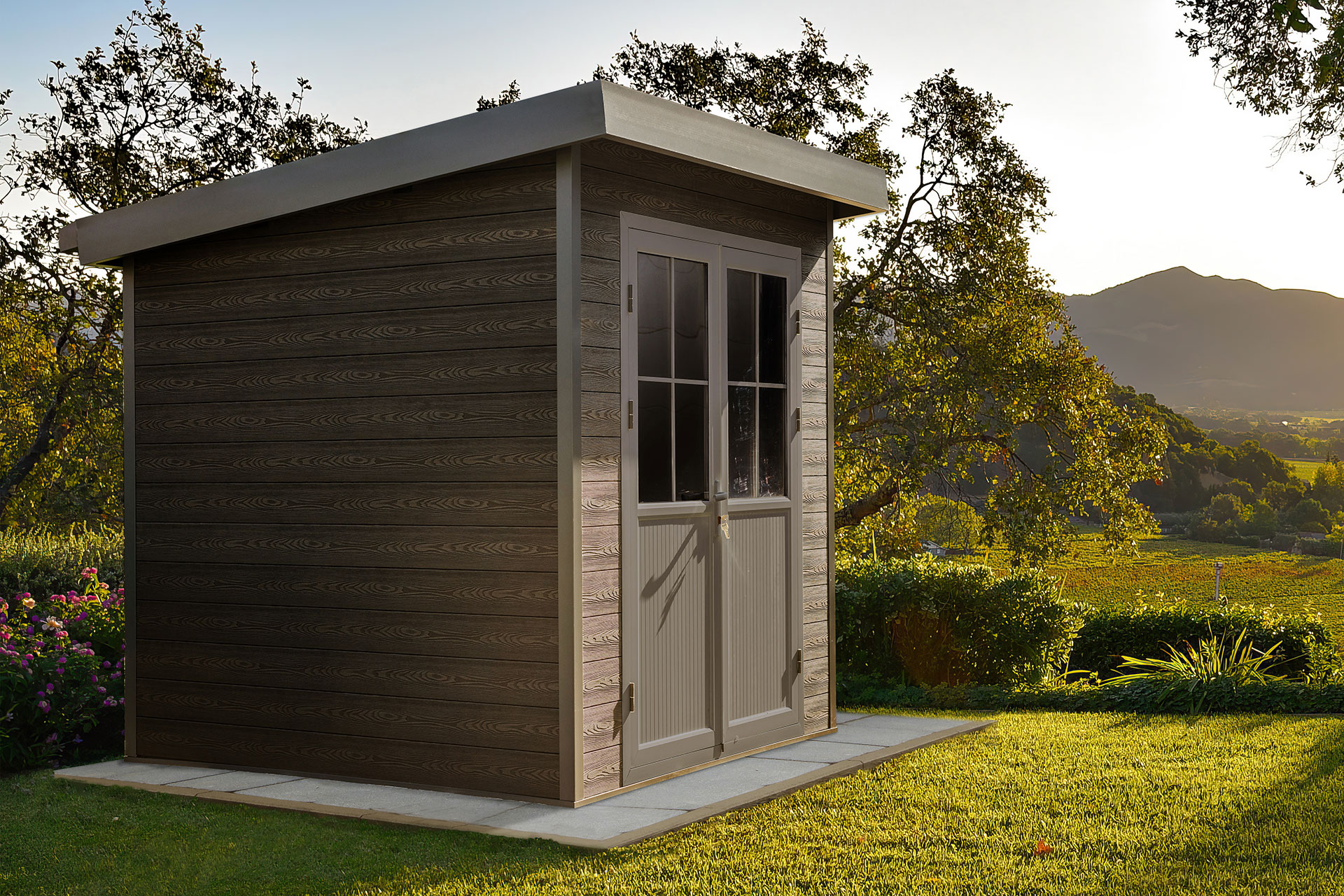 Lieben Sie eine natürliche Holzmaserung oder bevorzugen Sie eine ruhige Rauhfläche? Die Wände unseres Hauses bestehen aus WPC-Paneelen mit zwei unterschiedlichen Oberflächen. Sie haben dadurch die Auswahl, ob Sie lieber ein elegant ruhiges Außenbild ihres Gartenhauses bevorzugen oder ob eine warme, natürliche Holzmaserung besser in Ihr Ambiente passt. Für ein ganz individuelles Aussehen können Sie natürlich auch bei einzelnen Paneelen die Seite wechseln und bekommen so einen ganz persönlichen Look Ihres Hauses.