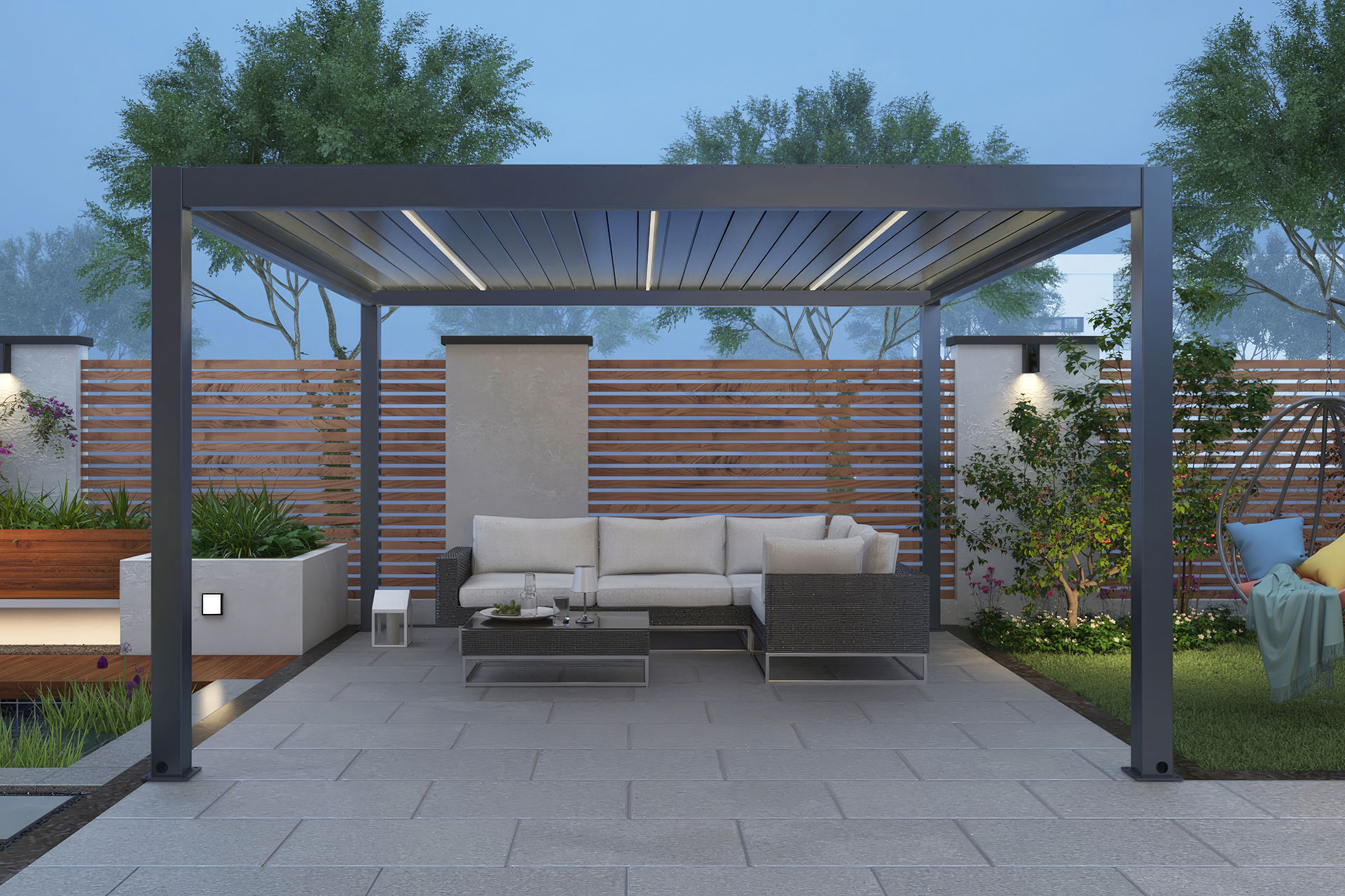 Eine Pergola wertet Ihre besonderen Lebensplätze auf und erweitert deren Nutzung auch bei schlechtem Wetter oder kälteren Jahreszeiten. Mit dem form- schönen Dach entsteht ein zusätzlicher Wohnraum im Garten mit geborgenem Charakter, in dem Sie herrlich entspannen können. Der neue Platz lässt sich ganz nach Ihren Wünschen auch zum geselligen Grillen, für Yoga, Fitness oder als Arbeitsplatz an der frischen Luft nutzen. Und das Beste ist – unsere Pergolen sind schon mit LED-Lichtleisten ausgerüstet. So müssen Sie nichts mehr umständlich nachträglich installieren!