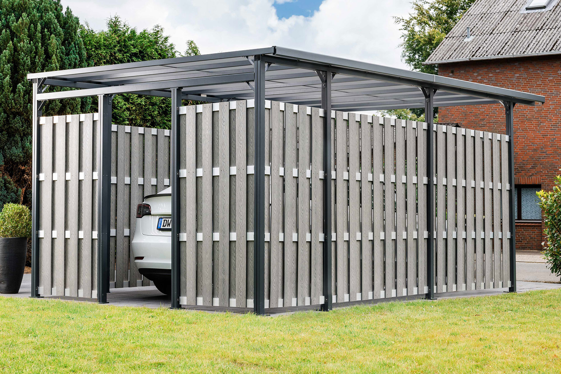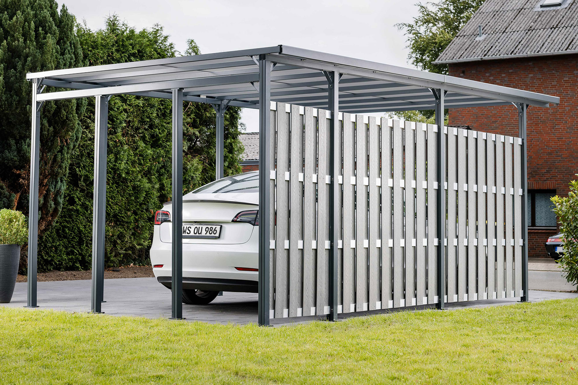 Natürlich können Sie auch weniger Wandelemente verwenden und diese z. B. nur an einer Seite einbauen. Sie haben dadurch die maximale Variabilität, den Carport auf Ihre individuellen Bedürfnisse hin zu gestalten. Auch ist eine nahtlose Integration in einen Grenzsichtschutz möglich. Das spart Platz auf Ihrem Grundstück und schafft gerade bei engen Raumverhältnissen optimale Bedingungen.