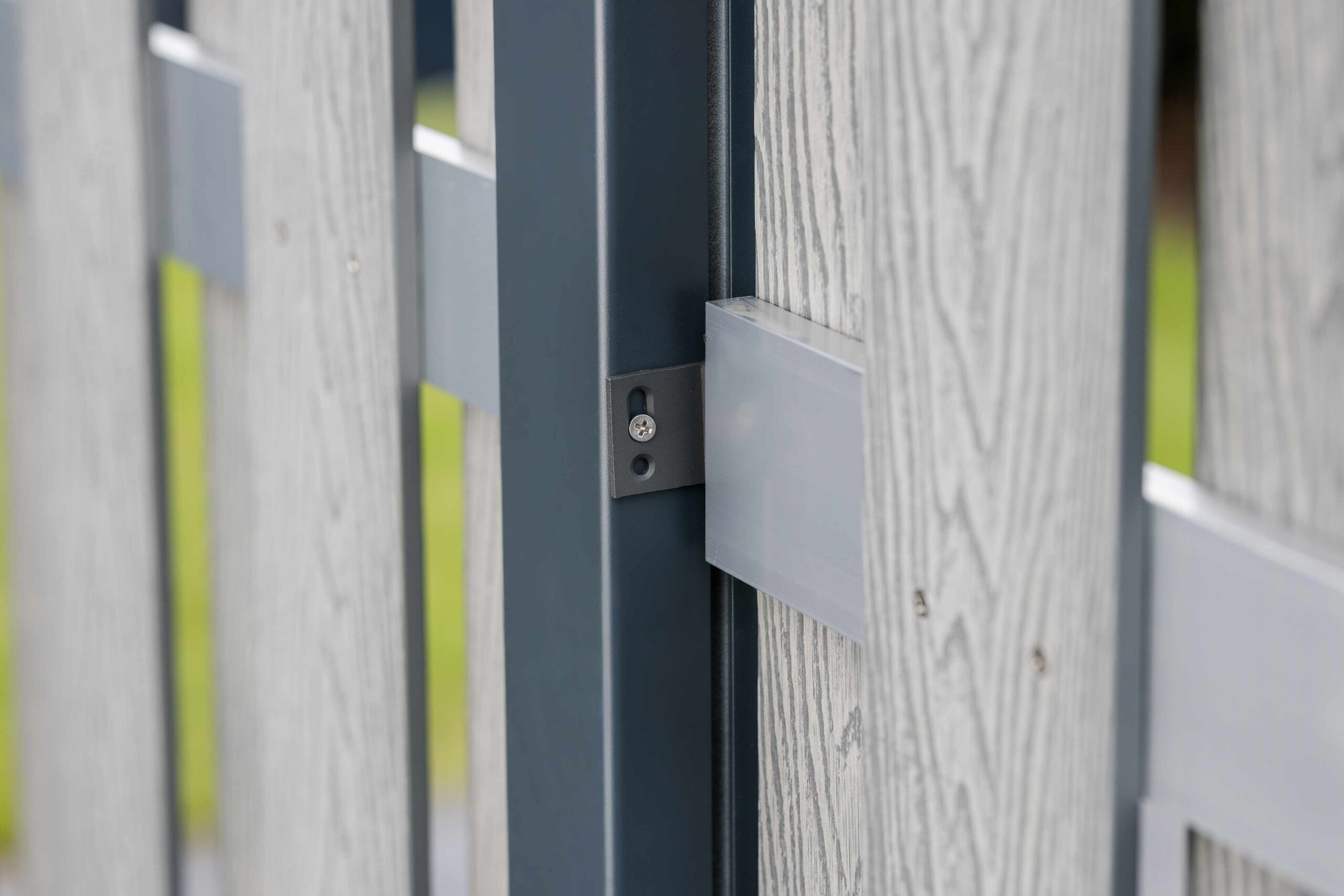 Nachdem der Carport vollständig aufgestellt ist, werden die seitlichen Wandelemente mit verdeckten Befestigungselementen mit den Pfosten verbunden und so nahtlos integriert. Ein individuelles Anpassen einzelner Bauteile ist durch die spezielle Konstruktion nicht nötig.