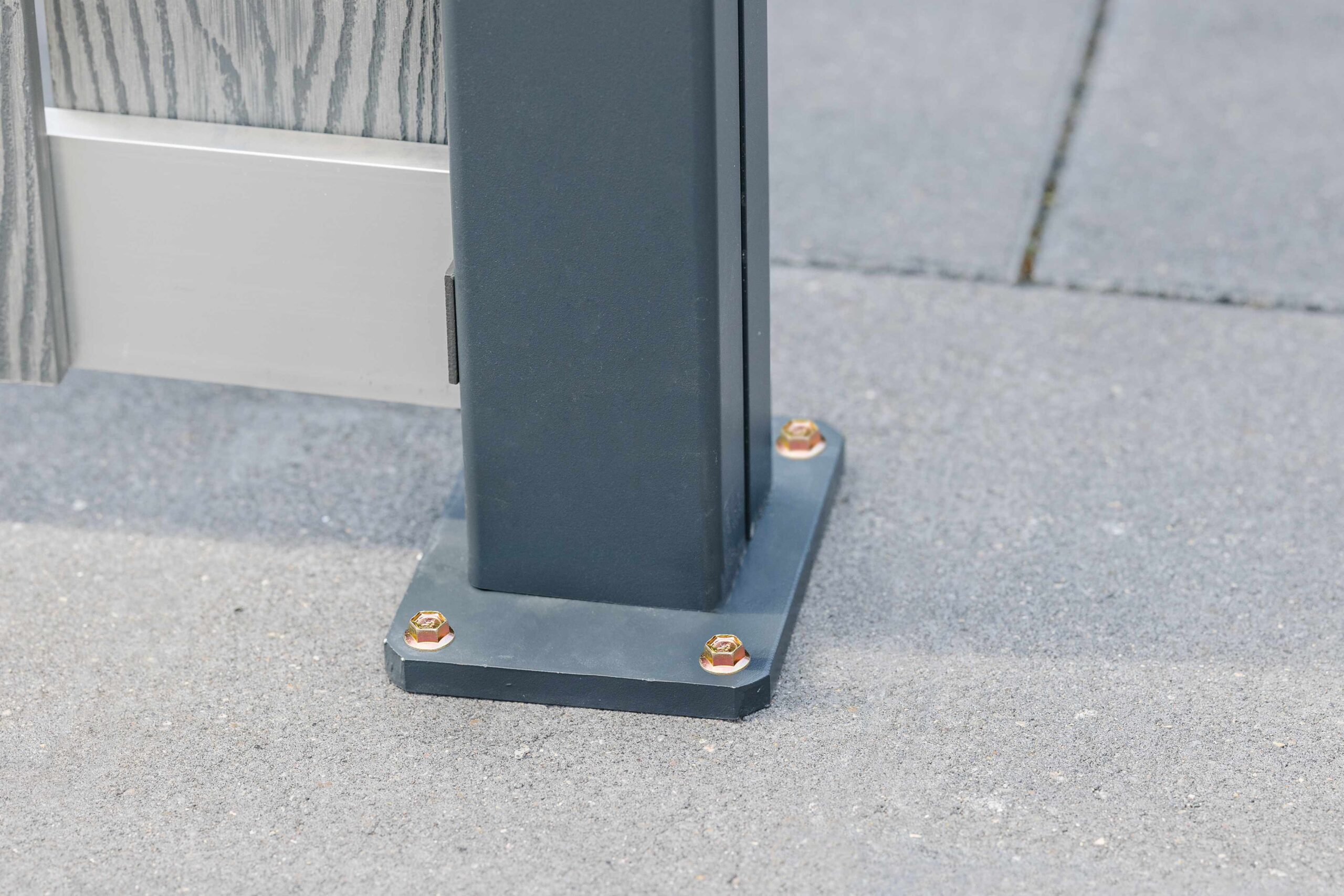 Mit stabilen Bodenplatten werden die 8 Pfosten des Carports mit den beiliegenden Befestigungsdübeln am Fundament verankert. Alternativ können Sie den Carport auch mit Betonankern aufstellen, die im Boden eingegraben sind.