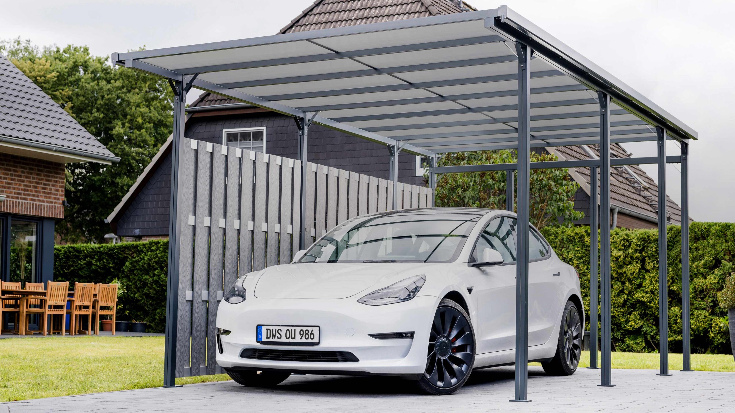Wenn Sie im ersten Schritt nur den Carport aufstellen möchten, können Sie diesen auch später noch mit den schützenden Seitenwänden ausbauen, ohne dass am Carport etwas deinstalliert werden müsste. Stabil und grazil passt unser moderner Carport mit Flachdach und Seitenwänden hervorragend in den Garten mit zeitgemäßem Flair.